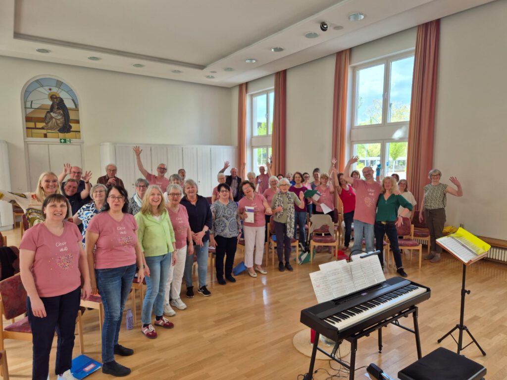 Wie weit diese wertvolle Unterstützung geht, durften wir im April erleben: Auf Einladung der Chorgemeinschaft Forst-Wachenheim verbrachten wir einen gemeinsamen Probesamstag im Dominikus-Institut in Speyer. Neben der intensiven Arbeit an neuen Stücken kamen wir in den Genuss einer Schulung durch eine professionelle Stimmbildnerin – für unseren Chor dank der herzlichen Einladung völlig kostenfrei. Das Foto der gemeinsamen Probe gibt einen kleinen Eindruck von der tollen Atmosphäre und dem großen „Wir-Gefühl“ dieses Tages.