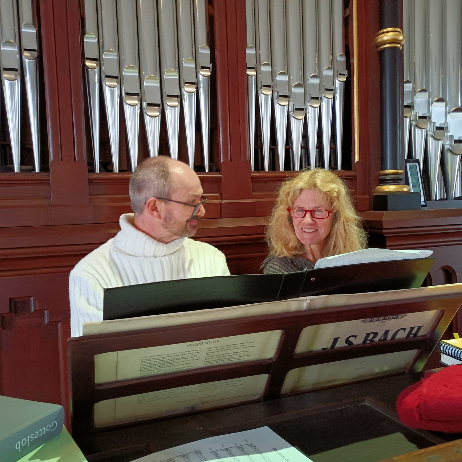 Was als kollegialer Austausch unter Chorleitern begann, hat sich zu einer wunderbaren Partnerschaft entwickelt: Die Chorgemeinschaft Forst-Wachenheim und der Kirchenchor Harthausen bereichern sich durch gezielte gemeinsame Projekte. Das Besondere an dieser Verbindung? Die Chorleiter Anette Seesing und Andreas Senz unterstützen sich gegenseitig unentgeltlich durch Gesang oder an der Orgel, dem Klavier und der Querflöte. Das schont nicht nur spürbar unser Budget, sondern schenkt den Dirigenten auch den nötigen Freiraum, um sich ganz auf die musikalische Leitung zu konzentrieren. Dabei ergänzen sich die Erfahrungen und Ideen der beiden Chorleiter ausgezeichnet, was das Wirken der Chöre unglaublich bereichert. Ein schönes Zeugnis dieser Zusammenarbeit zeigt unser Foto der beiden an der Orgel in Forst.